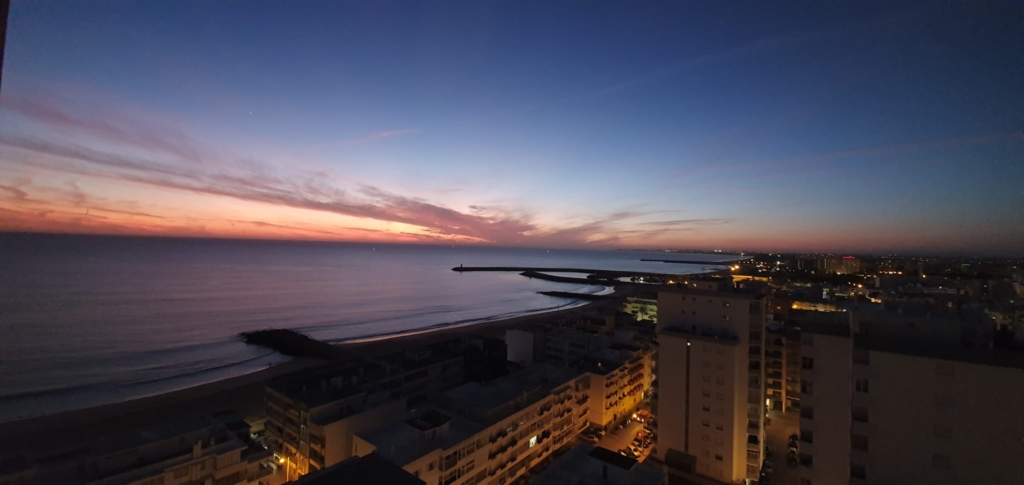Apartamento acolhedor, com lindas vistas mar composto por 2 quartos com arrumação (um com cama de casal e outro com 2 camas de solteiro) sala de estar com kitchenette equipada, 2 casas de banho com chuveiro, 1 varanda aberta com espaço para refeições e vista mar e 1 varanda fechada. Todas as divisões têm vista para o mar e muita exposição solar. Esta linda propriedade com maravilhosas vistas para o mar tem uma decoração viva e elegante que o vai fazer sentir bem como se fosse a sua casa longe de casa.